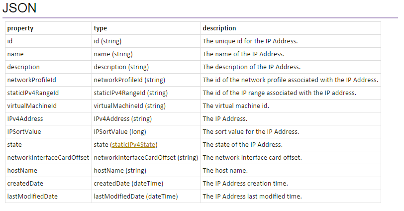What confuses me even more is that the API description for staticIPv4Address shows a lot more fields than what is returned.